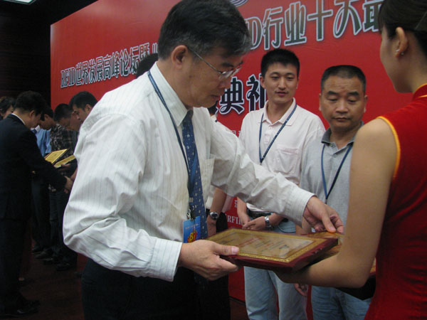 中國RFID產業聯盟歐陽宇秘書長在為獲獎企業代表頒獎(二)