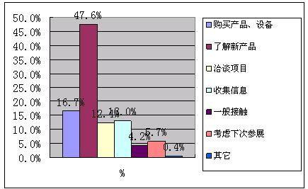 大多數(shù)企業(yè)利用此次機(jī)會(huì)進(jìn)行市場(chǎng)推廣,尋找新的合作伙伴,參與目的明確。