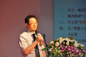 來自揚州市政府副秘書長殷圣元重點介紹了揚州市民卡的創(chuàng)新之處。