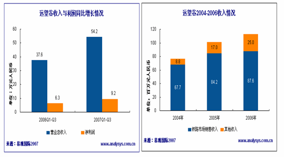 遠望谷公告了三季報,07年1-9月份,實現(xiàn)主營業(yè)務收入5421.8萬元,同比增長44.19%,凈利潤904.75萬元,同比增長45.97%;其中7-9月份實現(xiàn)主營業(yè)務收入1856.4萬元,同比增長18.64%,凈利潤332萬元,同比增長43.42%。