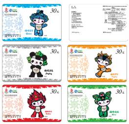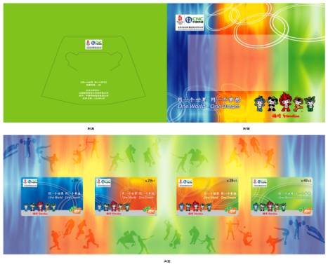 近日,江西捷德智能卡系統有限公司完成了為中國移動精品奧運紀念版手機充值卡的設計并獨家供卡。這套專門為紀念2008奧運會而設計的卡片版面由六枚卡片組成,包括五枚扇形卡和一枚圓形卡。卡片以奧運吉祥物福娃為主畫面,采用新穎的扇形卡設計和先進的燙金工藝,五枚福娃扇形卡合成一個全家福大圓,中國移動奧運合作伙伴標志被圍繞其中,意喻著中國移動作為奧運合作伙伴將為參加體育盛會的來自五湖四海的代表提供圓滿優質的移動信息服務。這套精美的卡片以禮品盒形式成套發行,非常具有收藏價值。