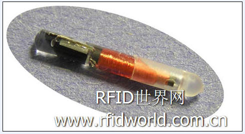 通常用于人體植入的標簽(由Digital Angel制造)和用于動物植入的標簽(由VeriChip制造)是玻璃封裝形式,由無源RFID芯片與天線組成。標簽的形狀和大小都相當于米粒大小,有一個唯一的識別碼。當RFID閱讀器靠近標簽時,標簽會以RF信號發送它的ID號,其余時間,標簽都處于睡眠狀態。