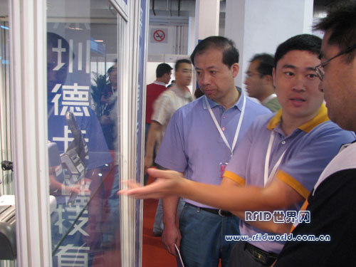 市場部產品主管魏學東在為觀展者講解T8型POS終端讀寫器