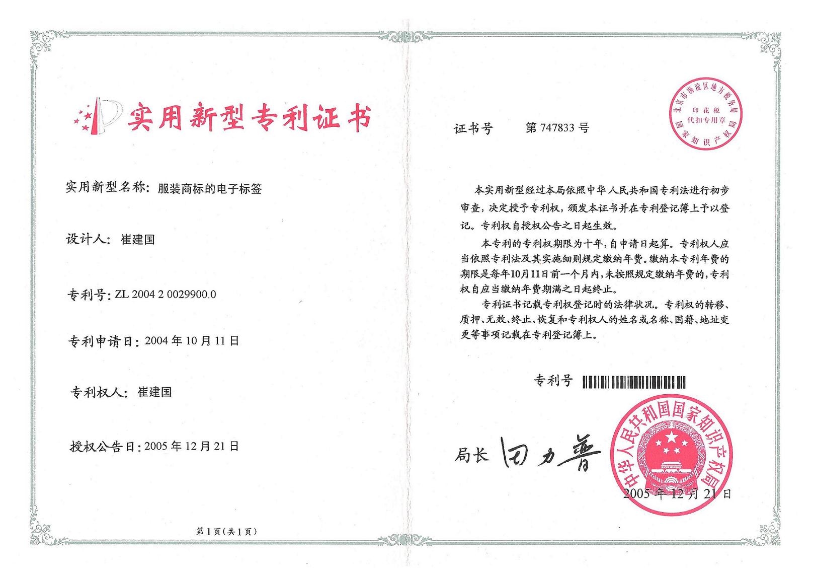 近日,有些RFID世界網(wǎng)入網(wǎng)企業(yè)在產(chǎn)品專欄中發(fā)布有關(guān)服裝電子標(biāo)簽的相關(guān)產(chǎn)品及介紹,涉及侵害我公司的有關(guān)電子標(biāo)簽的知識產(chǎn)權(quán)及商業(yè)利益。服裝商標(biāo)電子標(biāo)簽是我公司總經(jīng)理崔建國先生早在2004年底申請,于2005年12月21獲得授權(quán)的專利,專利號為:ZL 2004 2 0029900.0。該專利權(quán)人崔建國先生已于2006年將此專利權(quán)轉(zhuǎn)讓給我公司。