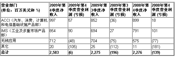ACCI(汽車/消費電子/計算機/通信基礎設施產品部)第四季度實現凈收入9.97億美元,環比提高17%,拉動增長的主要動力是汽車、機頂盒和計算機外設,同時也反映了節日銷售增長和工業環境回暖。第四季度ACCI業績返轉,回到盈利水平,實現營業利潤5700萬美元。上個季度虧損3600萬美元,去年同期盈利1800萬美元。