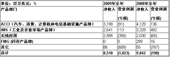2009年全年凈收入85.1億美元,2008年全年凈收入98.4億美元,而2008年凈收入包含2.99億美元的閃存業務收入,閃存業務于2008年3月30日從公司剝離。