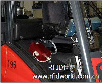 在叉車底部安裝 RFID閱讀器以讀取地板里的 RFID標簽