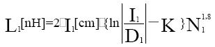 式中,I1為導(dǎo)體環(huán)一圈的長(zhǎng)度;D1為導(dǎo)線直徑或者PCB板上導(dǎo)體的寬度; K為天線形狀因素(環(huán)行天線K=1.07,矩形天線K=1.47);N1為圈數(shù)。