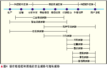 信任域威脅包括從商品生產到付款柜臺售出等整個環節,這也不是RFID特定的威脅,因需要在各環節之間共享大量的電子數據,某個不適當的共享機制將提供新的攻擊機會。