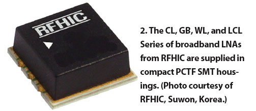 韓國著名射頻微波模塊廠商RFHIC公司,已經(jīng)開始使用PCTF技術(shù)生產(chǎn)其低噪聲放大器、增益模塊、寬帶低噪聲放大器(包括其CL、GB、WL、LCL系列產(chǎn)品)(圖2)。這些產(chǎn)品體積小(10.16×10.16X 4 mm)、價格低適于大批量生產(chǎn)。得益于PCTF技術(shù)的散熱特性和可靠性,該公司的寬帶低噪聲放大器產(chǎn)品能提供有益的高增益、低噪聲性能。對于這些應(yīng)用,PCTF技術(shù)具有承受高溫、散熱性好、易于制造以及可靠性高等優(yōu)點。