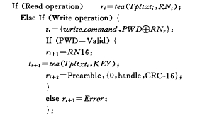根據第三章中RFID標簽安全性模型,EPC CIG2協(xié)議的標簽讀寫信息傳輸過程可用以下表達式表示: