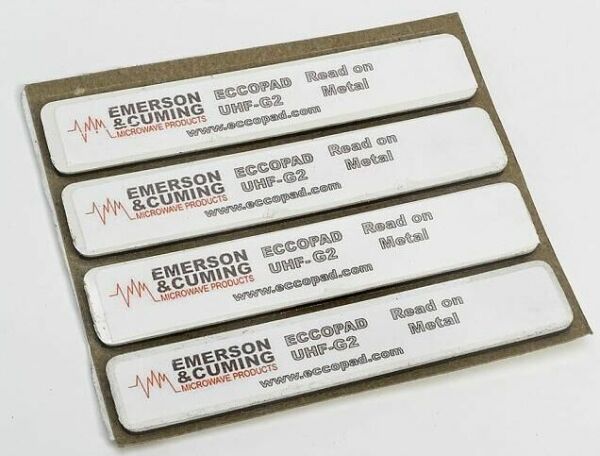 愛默森·康明微波產(chǎn)品公司致力于解決射頻識別與金屬的問題,并且現(xiàn)已生產(chǎn)出一種已獲專利的極薄人造橡膠,將這種橡膠放在射頻識別標(biāo)簽與金屬之間時,標(biāo)簽就能被解讀。該產(chǎn)品的名稱是ECCOPAD,這種隔離材料比普通的隔離泡棉薄很多,并能在保持極小厚度的同時使金屬上的射頻識別標(biāo)簽被解讀(見圖3)。其厚度僅為1/10英寸,可以被用來分離射頻識別標(biāo)簽與金屬。