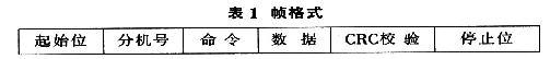 通信協(xié)議是網(wǎng)絡(luò)正常工作必不可少的,主要是對計(jì)算機(jī)和節(jié)點(diǎn)終端設(shè)備間通信幀格式的具體規(guī)范與統(tǒng)一,例如幀長度確定、命令字意義、參數(shù)長度、幀起始標(biāo)志、結(jié)束標(biāo)志等。具體幀格式規(guī)定如表1所示。每幀數(shù)據(jù)有23字節(jié),其中起始位1字節(jié),固定為Oxaa;分機(jī)號1字節(jié),可設(shè)置范圍為0~255;命令1字節(jié),包括5個(gè)命令:OxOf、Ox2f、Ox4f、Ox8f、Oxaf,依次為發(fā)送數(shù)據(jù)命令、寫數(shù)據(jù)命令、時(shí)間設(shè)置命令、功率設(shè)置命令、寫分機(jī)號;數(shù)據(jù)17字節(jié),包括標(biāo)簽數(shù)據(jù)12字節(jié)和時(shí)間數(shù)據(jù)5字節(jié);CRE校驗(yàn)采用CRC-16,共2字節(jié),是起始位到數(shù)據(jù)位之間所有數(shù)據(jù)的CRC校驗(yàn)值;停止位1字節(jié),固定為Ox55。
