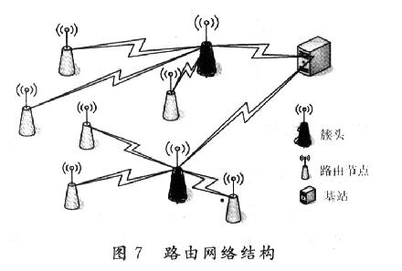路由協議解決的是數據傳輸的問題,是WSN的核心技術之一。WSN的路由協議與傳統的Internet網絡不同,WSN要求網絡在使用有限的硬件資源和能量的前提下完成數據的采集功能,由于無線信道的不穩定性,節點的移動和失效以及工廠環境等綜合因素的影響,WSN的拓撲結構隨時可能發生變化,而且變化的趨勢是隨機的,再加上網絡中存在大量的數據冗余,所以設計一款適合WSN的路由協議非常必要。針對核動力設備的特殊要求,采納一種實時性很高的路由算法TEEN。TEEN是一種分層結構路由協議,該思想下網絡通常劃分為簇,每個簇由一個簇頭和多個簇成員組成。簇頭節點負責簇內成員的管理,并且完成簇內信息的收集和融合操作,同時還負責簇間數據的轉發。TEEN網絡簡化結構(可以建立更多的分簇)如圖7所示,由于事先已經確定了雙電源系統的個數以及位置,所以選擇靠近基站的雙電源系統作為路由的簇頭,簇頭確定好了以后,簇頭節點通過廣播告知整個網絡自己成為簇頭的事實,網絡中的非簇頭節點根據接受信號的強度決定從屬的簇,并通知相關的簇。簇頭通過TDMA方法實現數據的調度,還向簇內成員廣播有關數據的硬閾值(Hard Threshold,HT)和軟閾值(SoftThreshold,ST)兩個參數。硬閾值是開始進行數據傳輸的最低限度,軟閾值則規定被檢測數據的變動范圍。在簇的穩定階段,節點通過傳感器不斷地感知其周圍環境。當節點首次檢測到數據到達硬閾值,便打開收發器進行數據傳送,同時將該檢測值存人節點保存為監測值(Sensed Value,SV)。節點再次進行數據傳送時要滿足兩個條件:當前的檢測值大于硬閾值;當前的檢測值與SV的差異等于或大于軟閾值。只要節點發送數據,變量SV便置為當前的的檢測值。TEEN協議的優點是實時性比較高;通過設置硬閾值和軟閾值兩個參數,TEEN能夠大大地減少數據傳送的次數;由于軟閾值可以改變,監控者通過設置不同的軟閾值可以方便地平衡監測準確性與系統節能性兩項指標;隨著簇首的變化,用戶可以根據需要重新設定兩個參數的值,從而控制數據傳輸的次數。但是TEEN不能對數據進行連續的采集,不適合數據在線監測,為此在TEEN的基礎上再向數據采集節點廣播一個計數時間,這樣的話哪怕沒有達到所需要的一個閾值,只要計數時間一到,將無條件采集所需的數據,從而達到在線監測的目的。