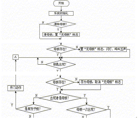 ① 清除母鑰。先按住母鑰刪除鍵,后按下啟動鍵,再放開啟動鍵。母鑰刪除鍵保持按住5 s,聽到一長聲后即表示刪除母鑰完成。此后雙燈閃爍,同時鳴叫五短聲,表示母鑰未設定。